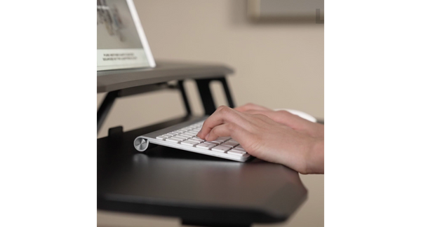 Our two-tier ergonomic desk features an adjustable stand allowing you to sit or stand, improving your posture and keeping you active, helping you to minimise fatigue caused by aches and pains.